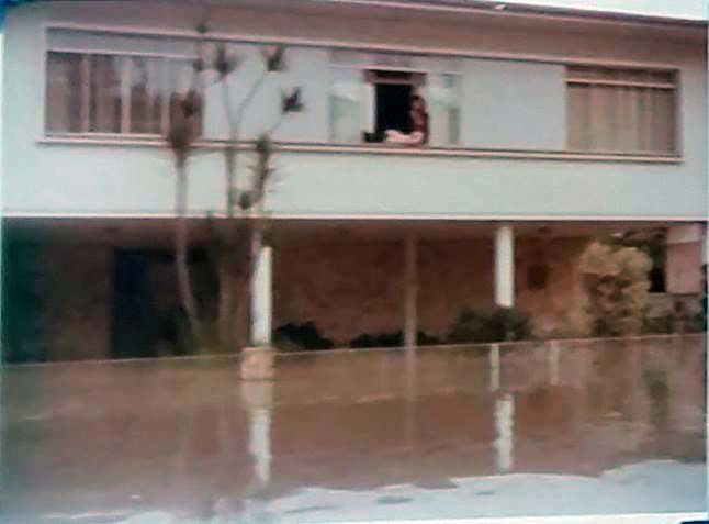Rua Richad Holetz na enchente. Casa do senhor Hannemann, já falecido, que por muitos anos trabalhou na Lojas Hermes Macedo