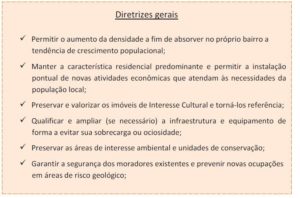 Se o projeto for aprovado, a cobertura florestal precisa ser preservada em pelo menos 30%, mesmo que não seja nativa. E outra peculiaridade: no bairro, é considerada área rural todos os locais com cota 100. Ou seja, 100 metros acima do nível do mar. E na cidade é terminantemente proibido construir qualquer numa distância de 100 do cume de um morro. Isso evita deslizamentos, erosão e preserva nascentes.