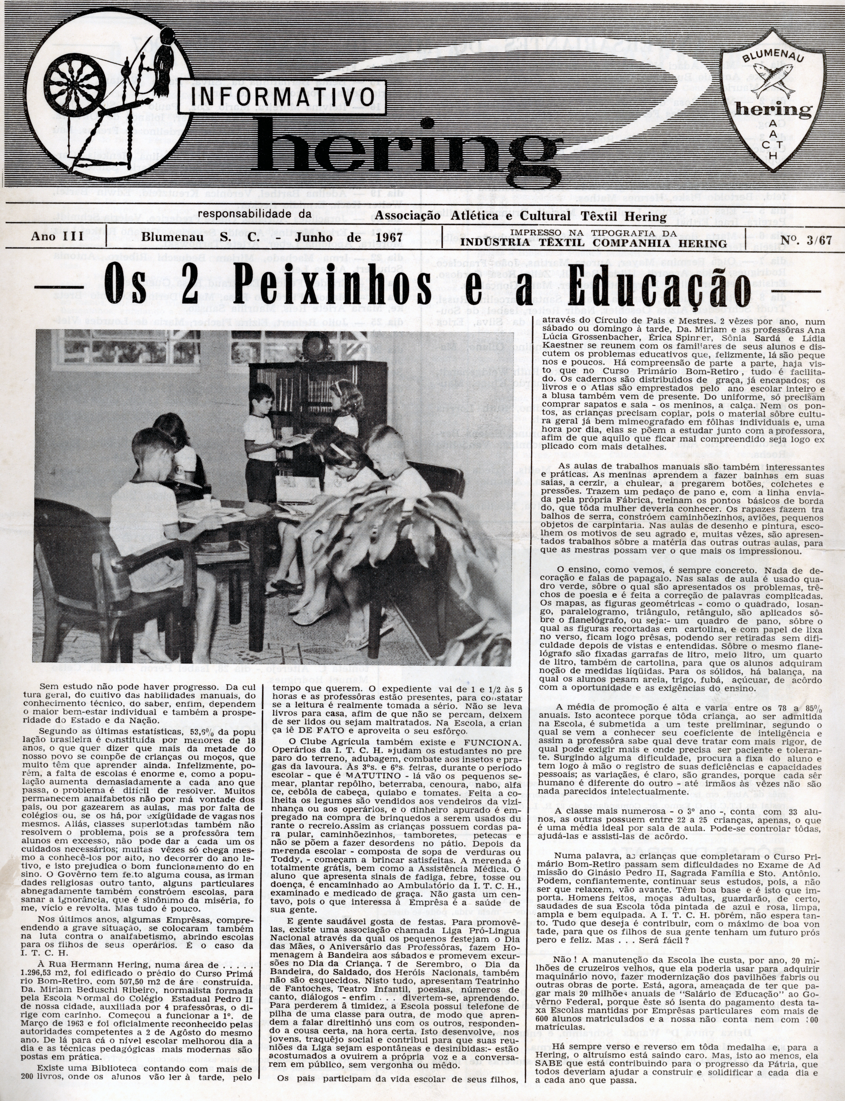 Uma reportagem publicada no “Informativo Hering” de junho de 1967, editado pela Associação Atlética e Cultural Têxtil Hering (AACTH), resgata um importante pedacinho da história do bairro e sua escola primária. Muitos moradores relataram ao Viver Bom Retiro suas lembranças da escolinha. Em busca desse resgate, contamos com a contribuição imprescindível da sempre prestativa equipe da Fundação Hermann Hering.