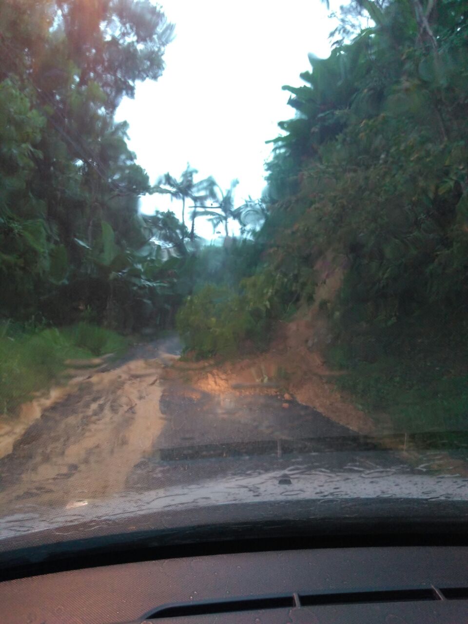 Muita água também desceu dos morros íngremes da rua, mas a boa cobertura vegetal, recomposta com o passar dos anos, amenizou um pouco a situação, especialmente nos pontos críticos onde ocorreram deslizamentos em 2008.