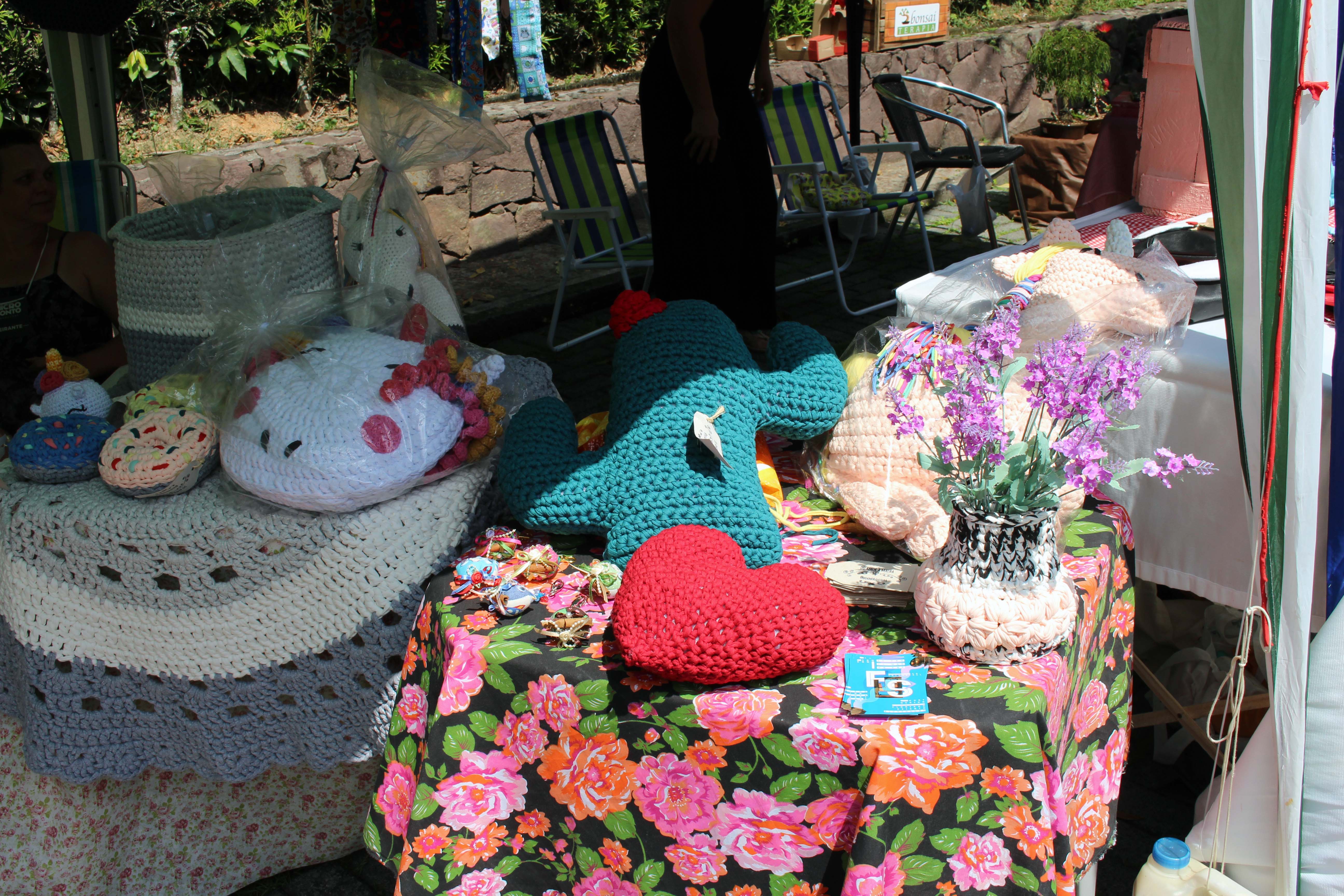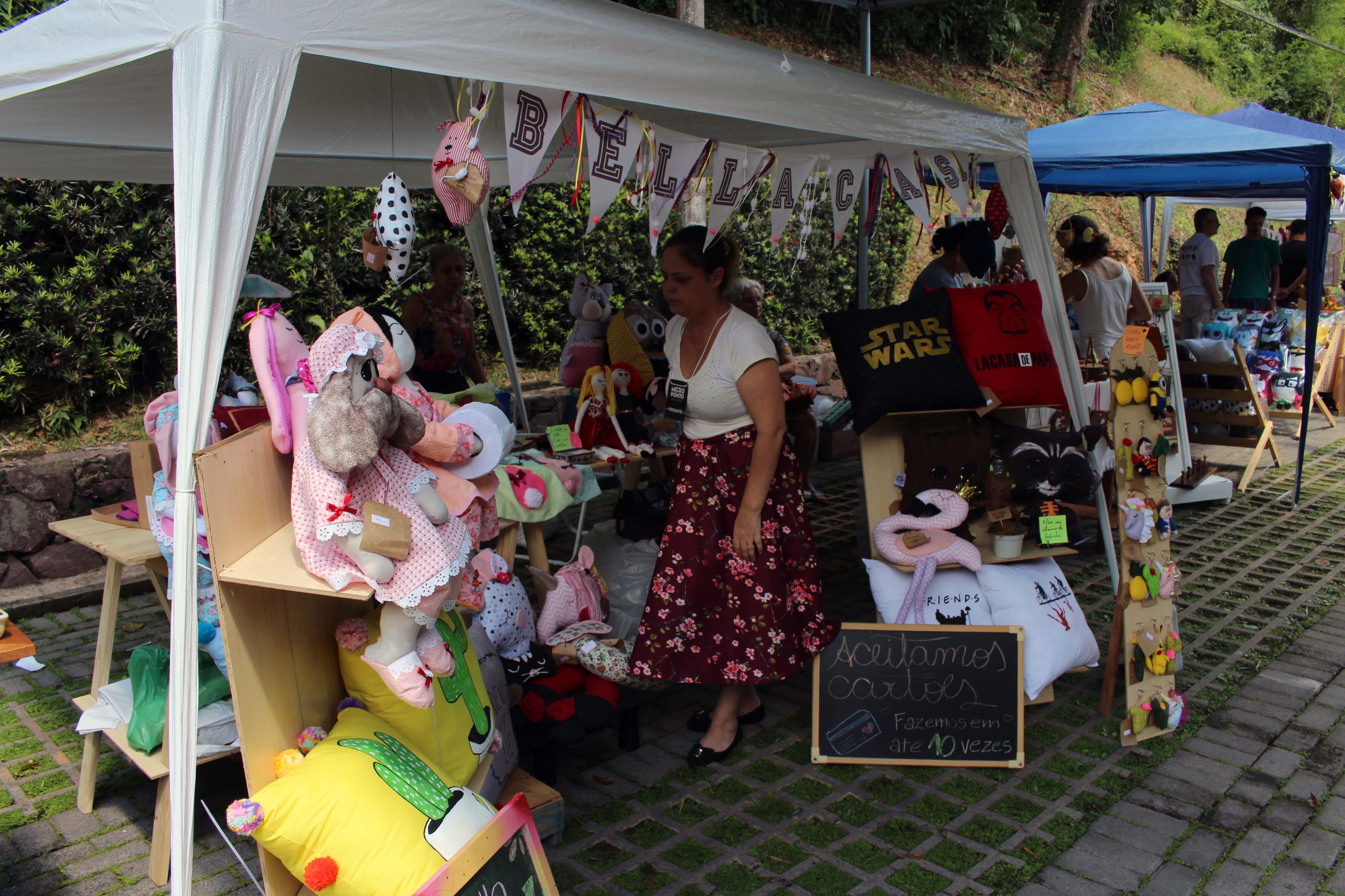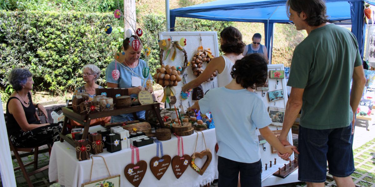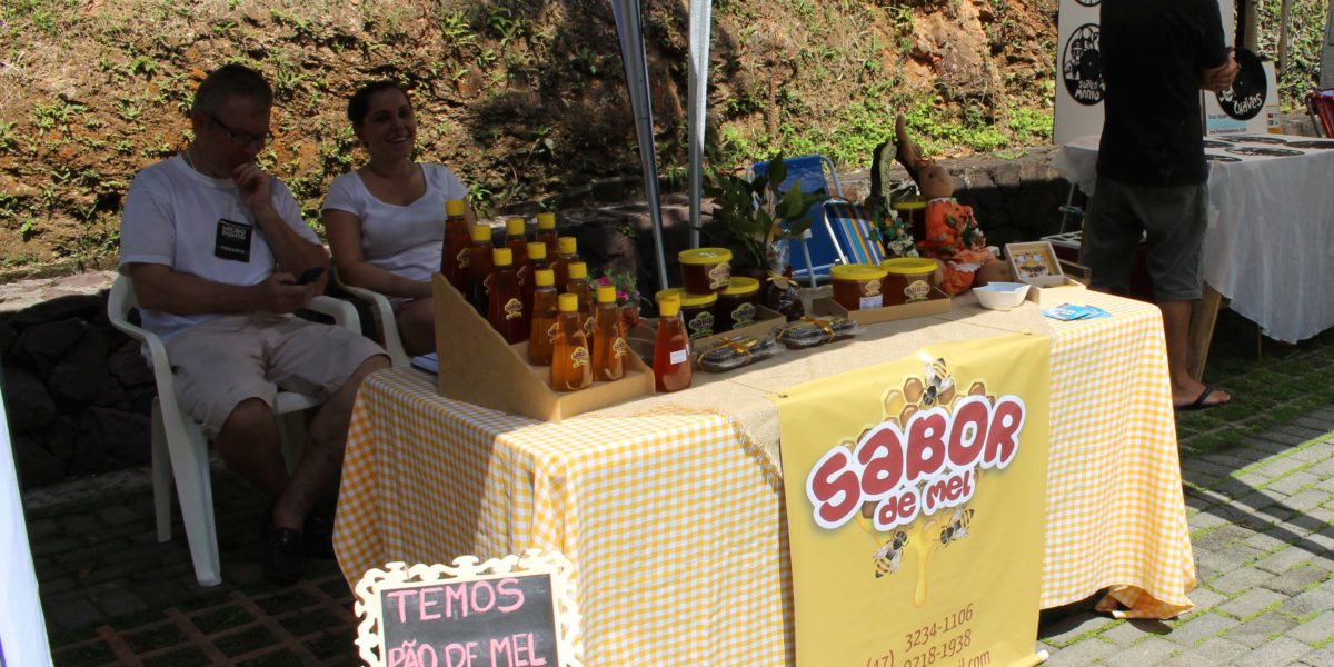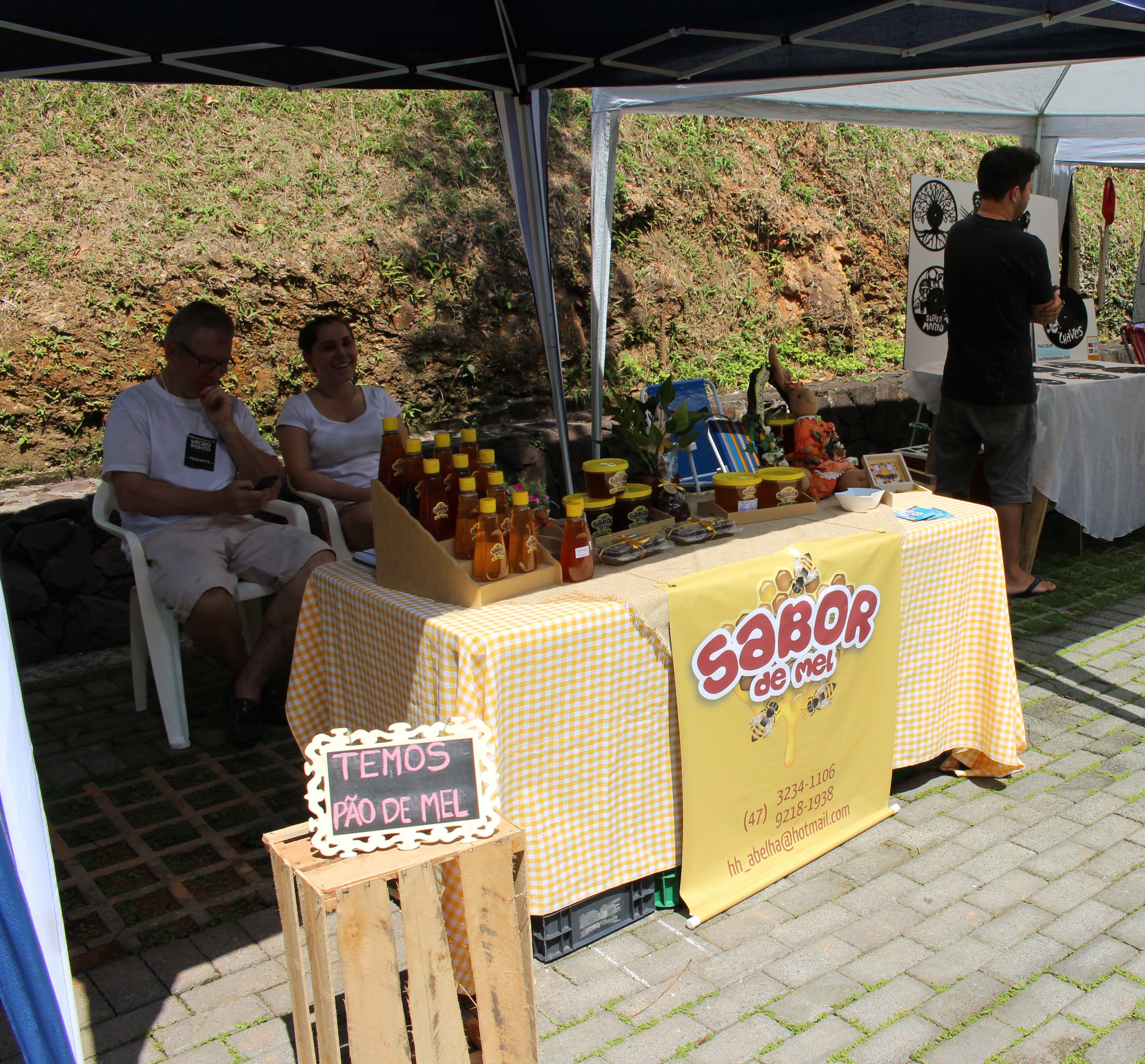 Na rua lateral do Museu Hering, 12 expositores apresentaram seus produtos. Eram produtos para decoração, bonsais, bijoux, artigo para o lar, mel, uso pessoal, entre outros.