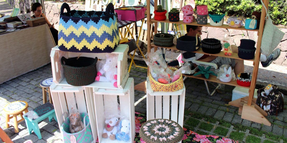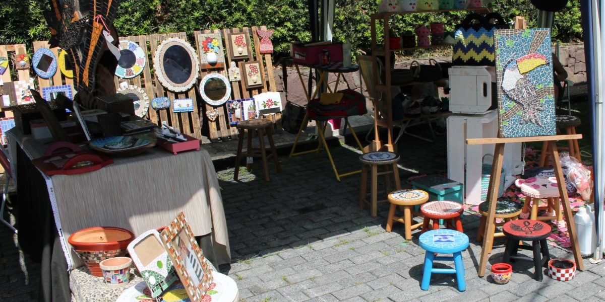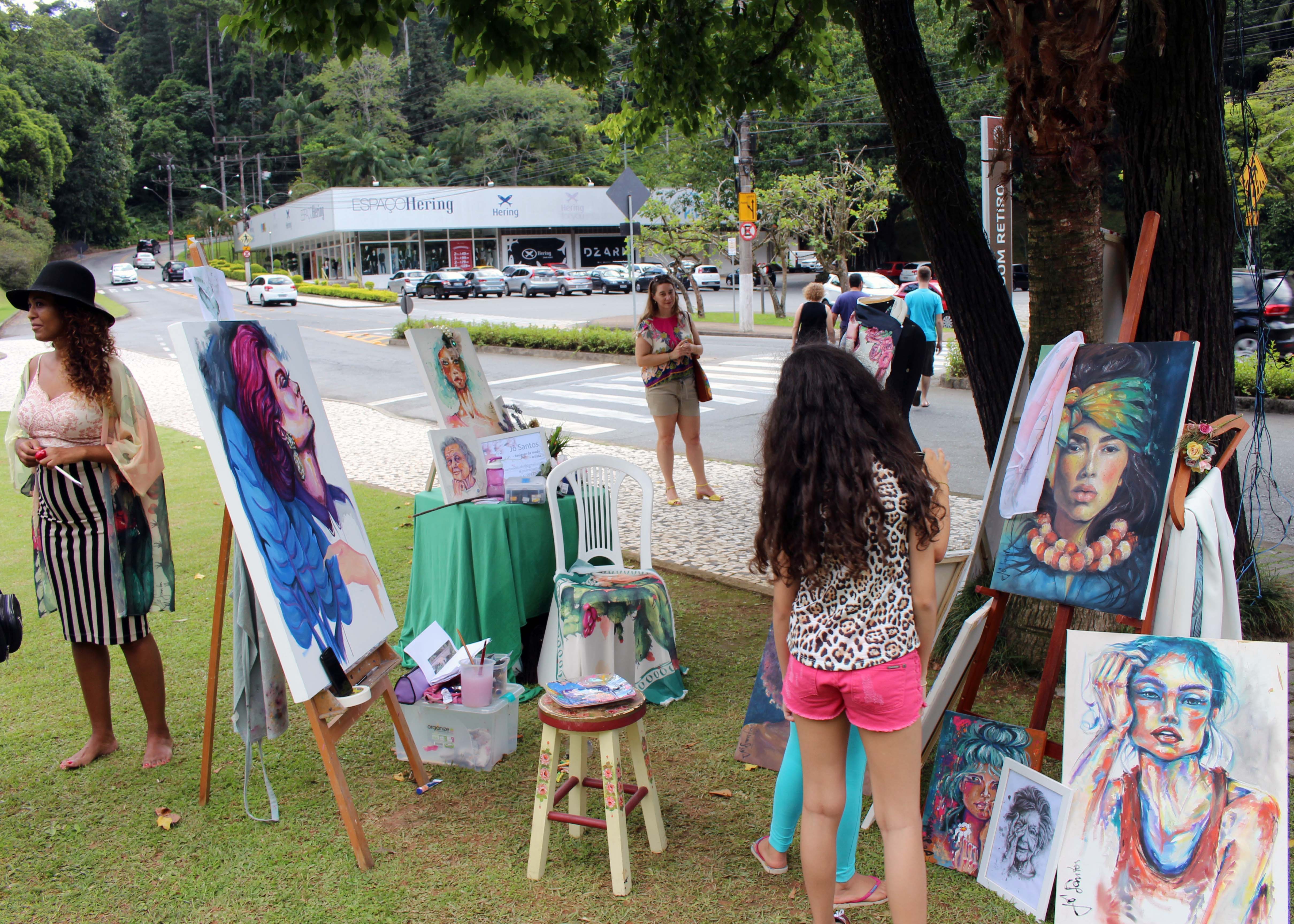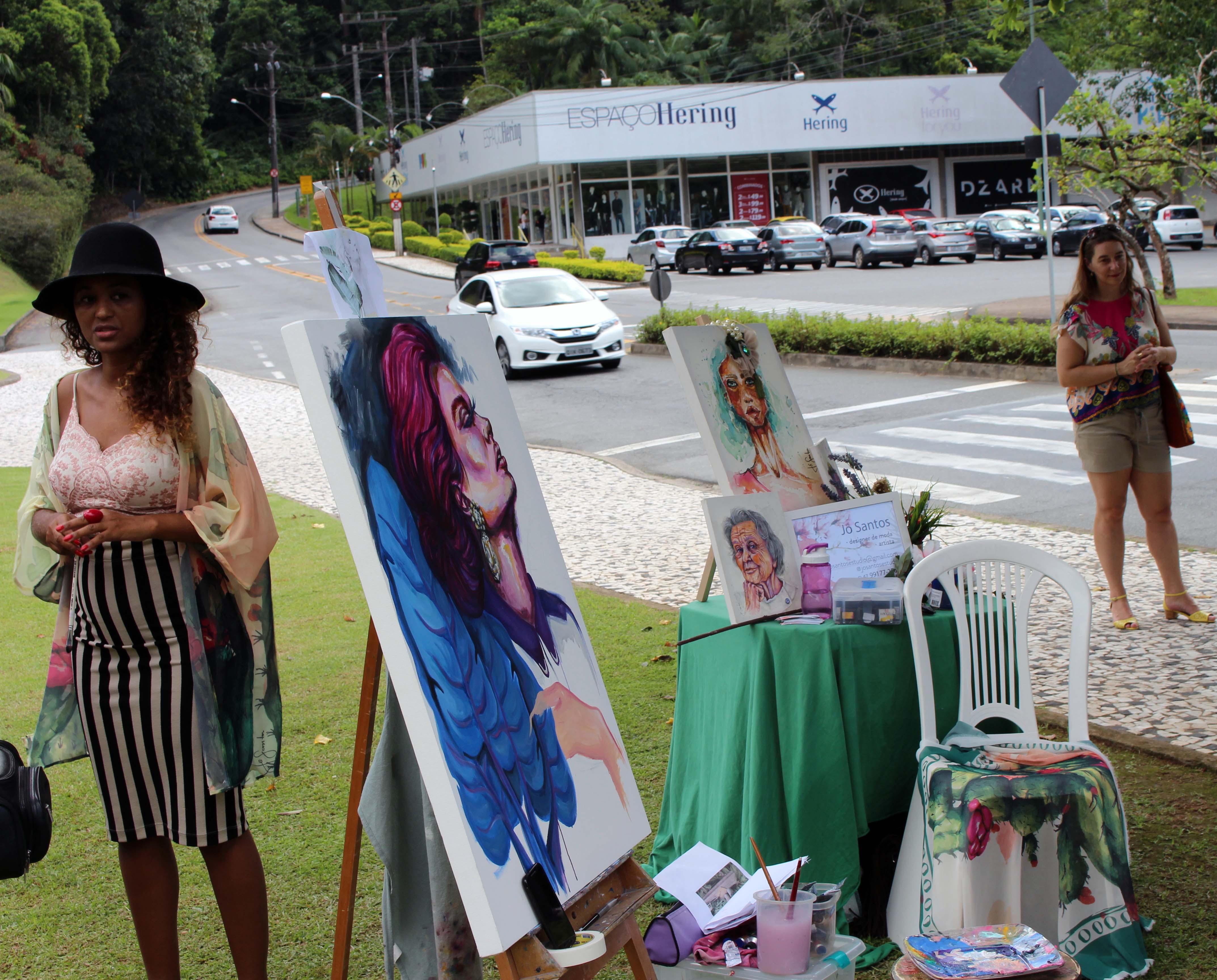 Na rua lateral do Museu Hering, 12 expositores apresentaram seus produtos. Eram produtos para decoração, bonsais, bijoux, artigo para o lar, mel, uso pessoal, entre outros.