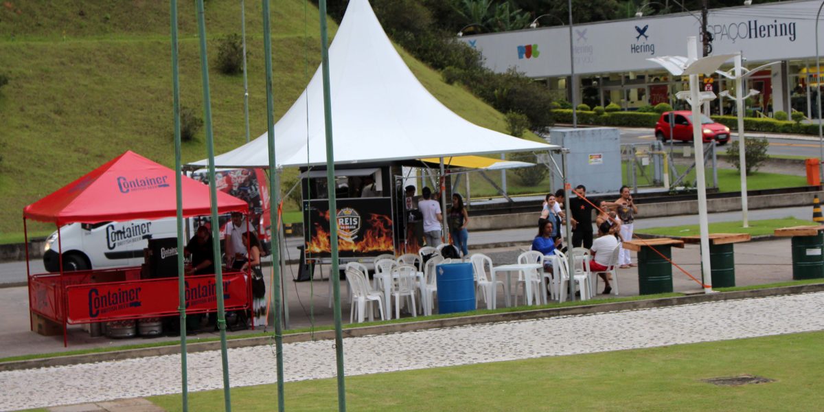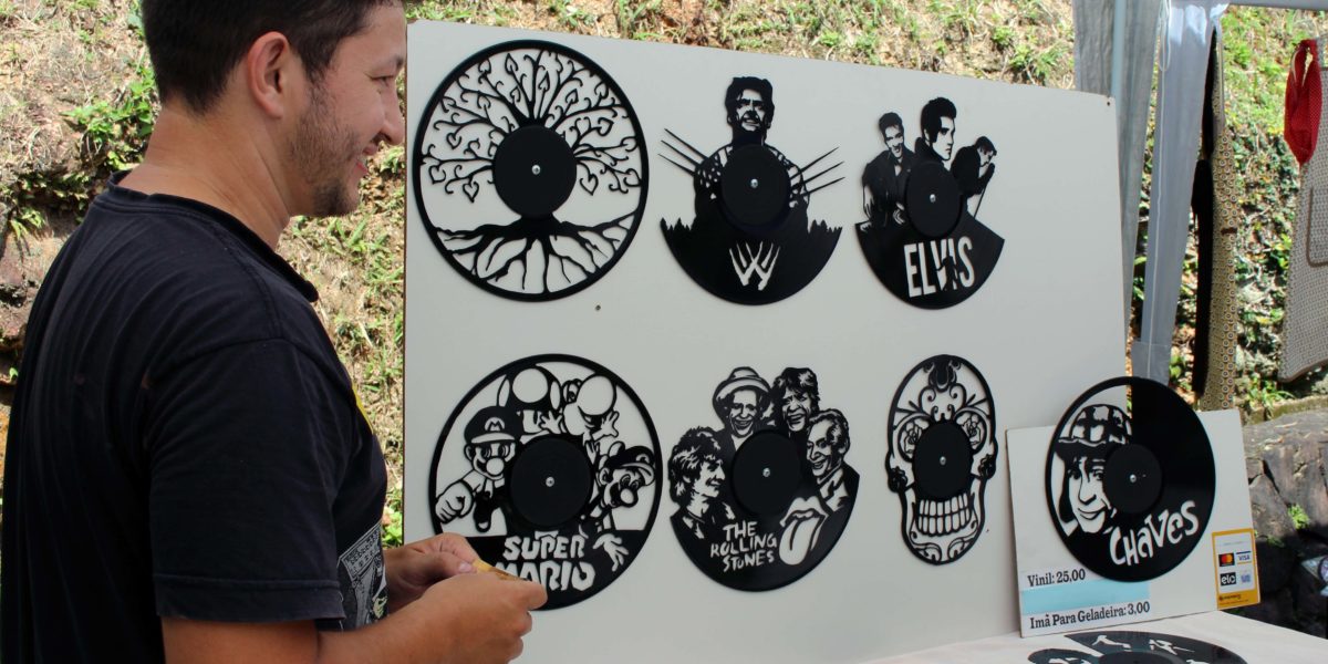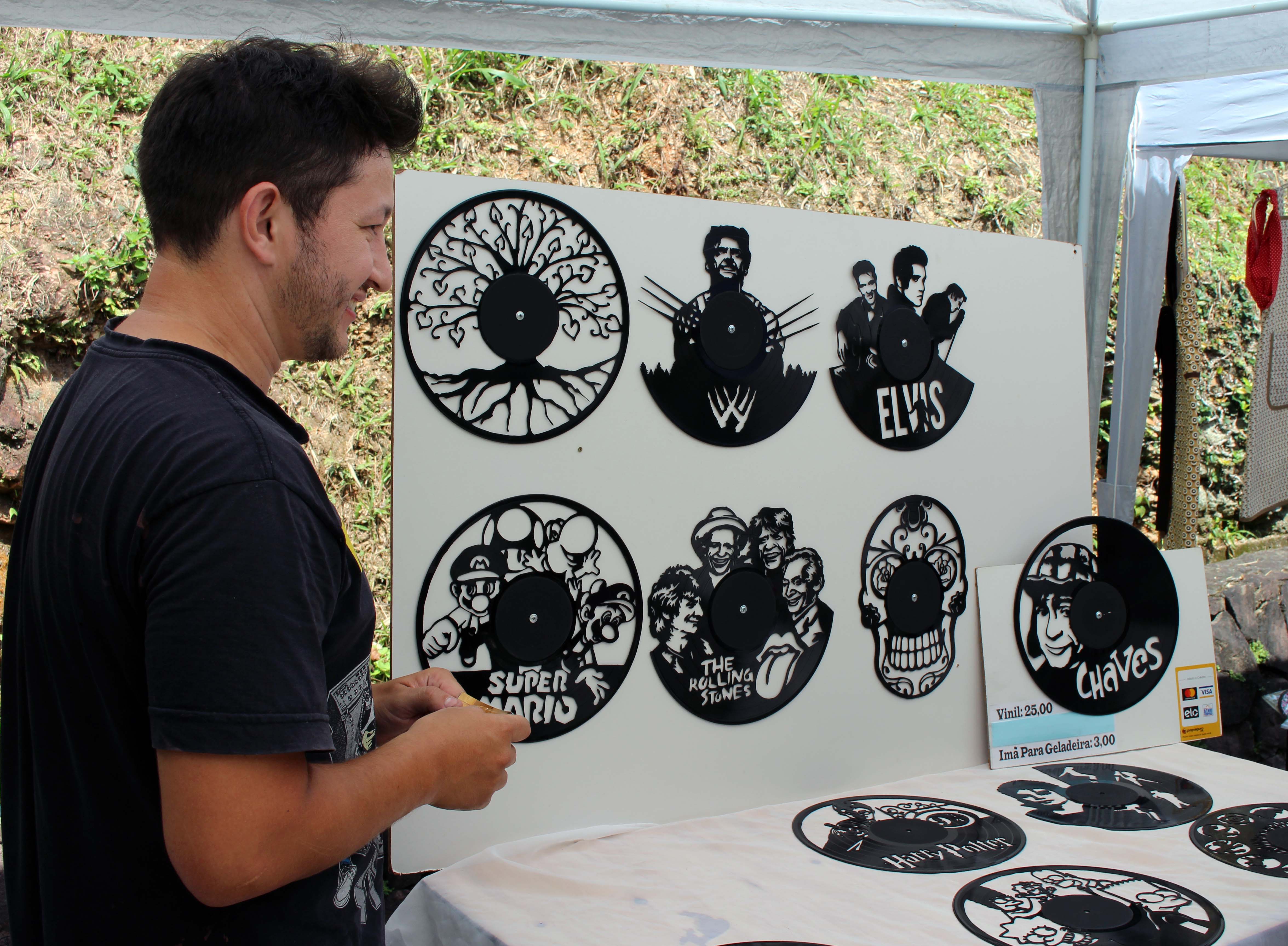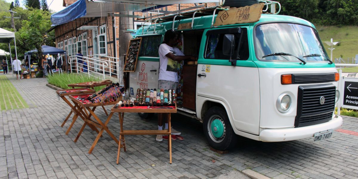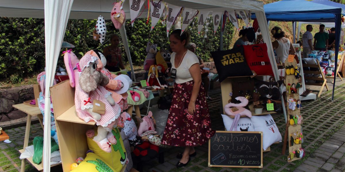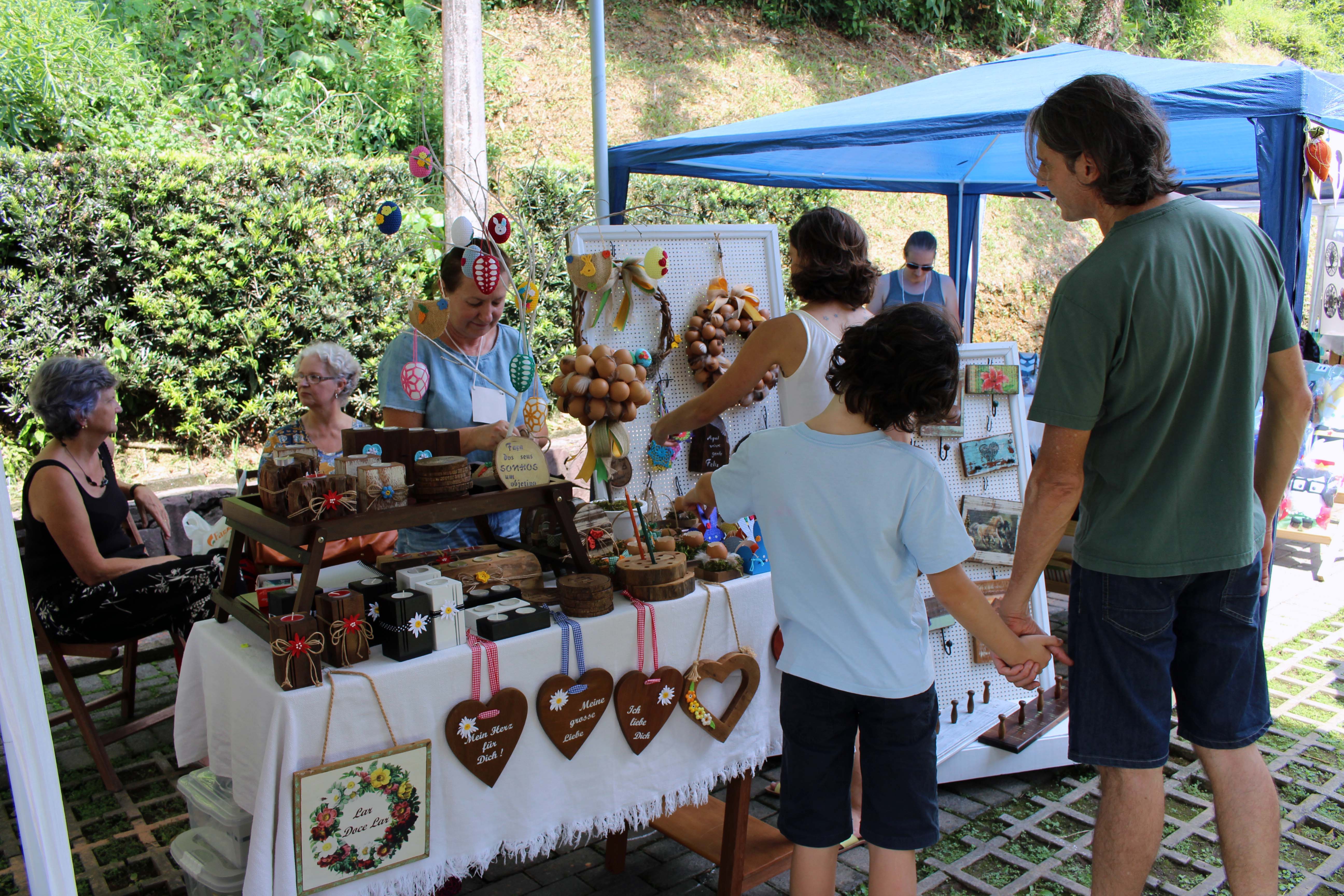 Na rua lateral do Museu Hering, 12 expositores apresentaram seus produtos. Eram produtos para decoração, bonsais, bijoux, artigo para o lar, mel, uso pessoal, entre outros.