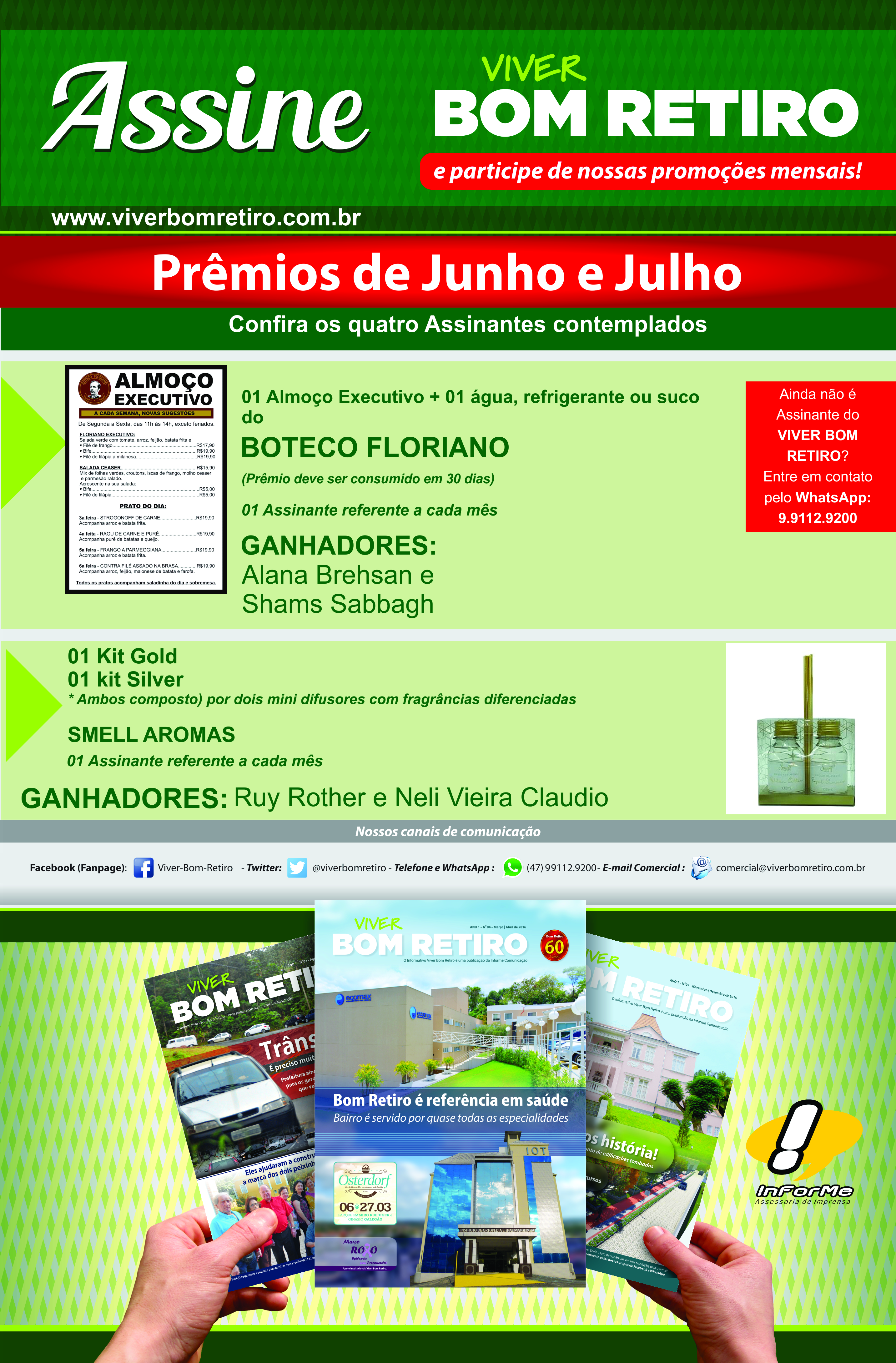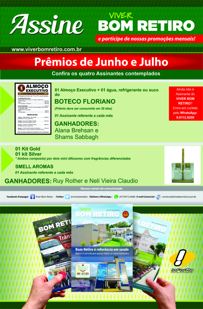 Confiram quem são os Assinantes contemplados no sorteio dos prêmios do VIVER BOM RETIRO de junho e Julho.