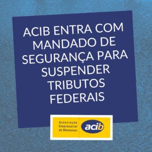 A Associação Empresarial de Blumenau (Acib) ingressou na Justiça Federal, na tarde desta quarta-feira, com um mandado de segurança coletivo, em benefício de todos os seus associados. O objetivo é obter uma decisão judicial para suspender o pagamento dos tributos federais, incluindo (mas não se limitando), a IRPJ, CSLL, PIS, COFINS, IPI, CIDE, Imposto de Importação, PIS/COFINS Importação, contribuições previdenciárias e contribuições destinadas a terceiros (sistema “S”, inclusive), bem como obrigações de empresas do Simples Nacional.