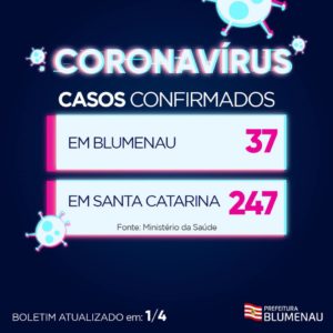 Em Santa Catarina, Blumenau é o segundo município com maior número de casos confirmados de Coronavírus. Florianópolis tem 60.