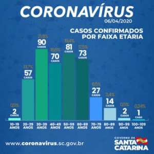 Santa Catarina registra 417 casos confirmados de Covid-19 nesta segunda-feira. O número representa um aumento 10% em relação ao último boletim. Desde o começo da pandemia, foram confirmadas 11 mortes no Estado por conta da doença. A última delas foi de um homem de 57 anos de Gaspar, que fazia parte do grupo de risco por apresentar comorbidades.