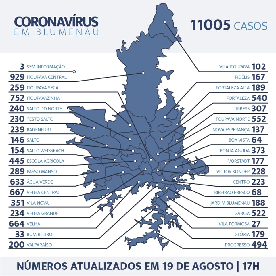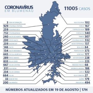 Blumenau registrou nesta quarta-feira, mais um óbito em decorrência de coronavírus. A 101ª vítima foi um homem de 82 anos. Ele estava internado desde o dia 08.