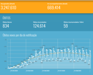Em relação aos óbitos, 124.614 brasileiros perderam a vida em decorrência de complicações do vírus. Nas últimas horas foram registradas mais 834 mortes nos sistemas oficiais. A maior parte aconteceu em outros períodos, mas tiveram conclusão das investigações com confirmações das causas por Covid-19 apenas neste período.
