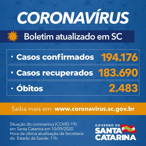 Dos 194.176 casos de coronavírus em Santa Catarina, 183.690 (95%) são considerados recuperados. Outros 8.003 seguem em acompanhamento. A doença respiratória causou 2.483 mortes no estado desde o início da pandemia. Esses números colocam a taxa de letalidade em 1,28%. As 295 cidades catarinenses já têm registro de casos confirmados – 217 registraram pelo menos um óbito.