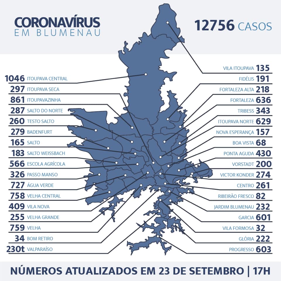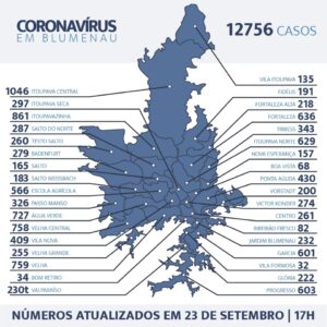 Blumenau registrou nesta quarta-feira, o 149º óbito em decorrência do coronavírus. A vítima foi um homem de 69 anos, internado em UTI desde o dia 12 de setembro. Nesta quarta foram mais 24 blumenauenses testados positivos, totalizando agora 12.756 casos confirmados.