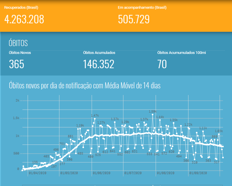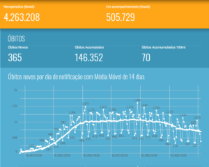 Em relação aos óbitos, o país tem 146.352 vítimas em decorrência do vírus. Nas últimas 24 horas, foram 365 mortes entrando nas estatísticas oficiais do Ministério da saúde. A maior parte aconteceu em outros períodos, mas tiveram conclusão das investigações com confirmações das causas por Covid-19 apenas neste período. Assim, 342 óbitos, de fato, ocorreram nos últimos três dias. Outros 2.507 permanecem em investigação.