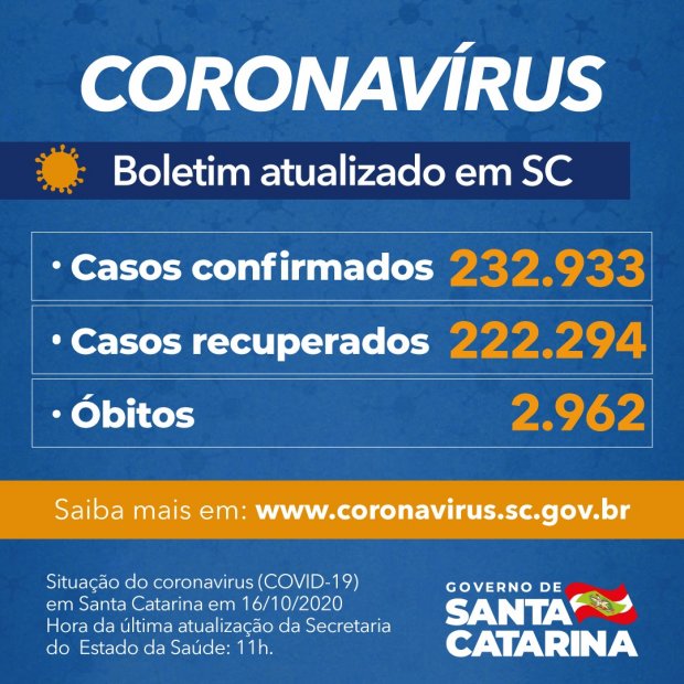 Dos 232.933 catarinenses positivados pelo novo coronavírus, 222.294 (95%) estão recuperados. Outros 7.677 permanecem em acompanhamento. O número de vítimas é de 2.962 óbitos desde o início da pandemia – uma taxa de letalidade é de 1,27%. Já foram confirmados casos em todos os 295 municípios catarinenses e 231 cidades registraram pelo menos um óbito.
