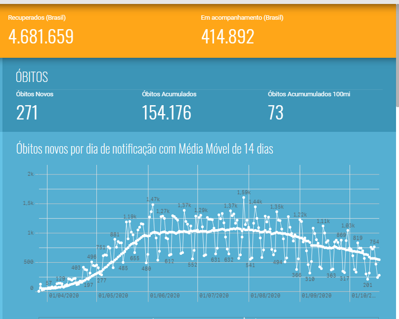 Blumenau registrou nesta segunda-feira, mais dois óbitos em decorrência da Covid-19, totalizando 157 desde o início da pandemia. As vítimas foram duas mulheres de 84 e 92 anos. A vítima de 92 anos estava internada desde o dia 14, vindo a falecer na manhã do último sábado. Ela era considerada caso suspeito e teve o resultado do exame confirmado na manhã desta segunda-feira. A mulher de 84 anos estava hospitalizada desde o dia 21 de setembro e foi transferida para UTI no dia 5 de outubro. Ela faleceu na manhã desta segunda.
