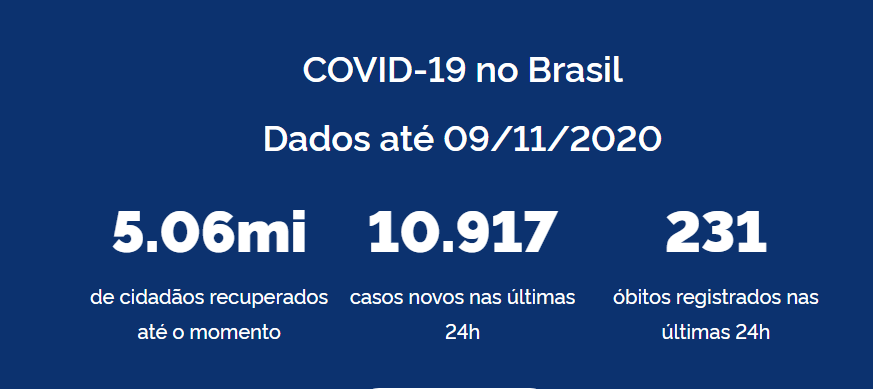 Já o total de recuperados ainda se refere a informações compiladas na última quarta-feira (4/11). Isso é devido à instabilidade no sistema de informática da pasta, já que esses números são calculados pelo próprio Ministério após análise de informações detalhadas na rede.