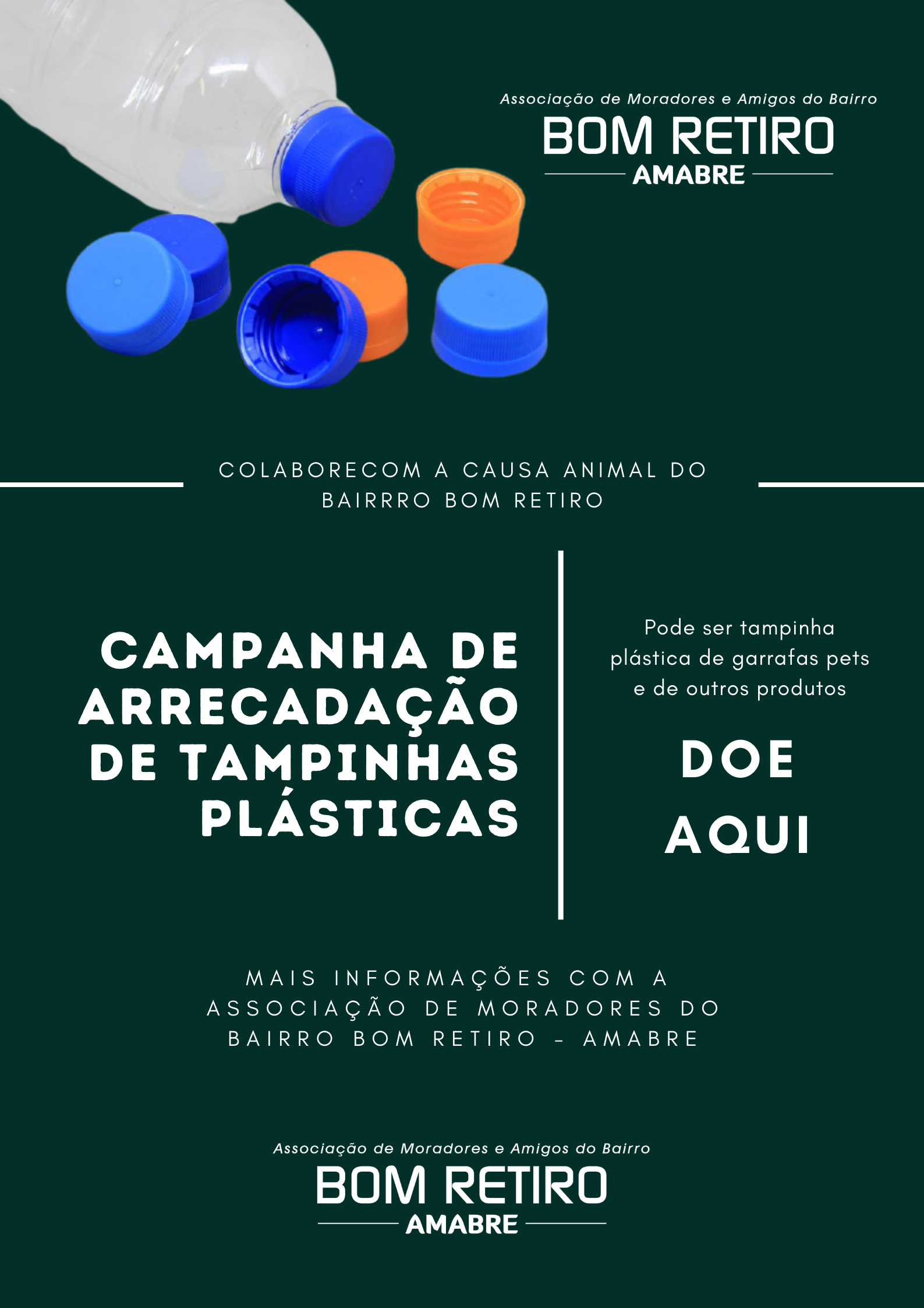 Em outra frente, a Associação de Moradores lançou uma campanha para coletar tampas plásticas, também em favor da causa animal. Moradores e colaboradores das empresas do bairro poderão destinar tampas plásticas de garrafas pet e outras embalagens em favor do projeto.