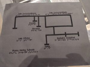 O espaço recebeu piso tátil, para direcionamento nos espaços e alerta de obstáculos; placas de aviso em braile nas áreas de escadas e reprodução tátil do acervo, com a confecção de réplicas em relevo de fotografias. O incentivo permite também ações de conscientização. O visitante pode acessar um e-book da exposição.