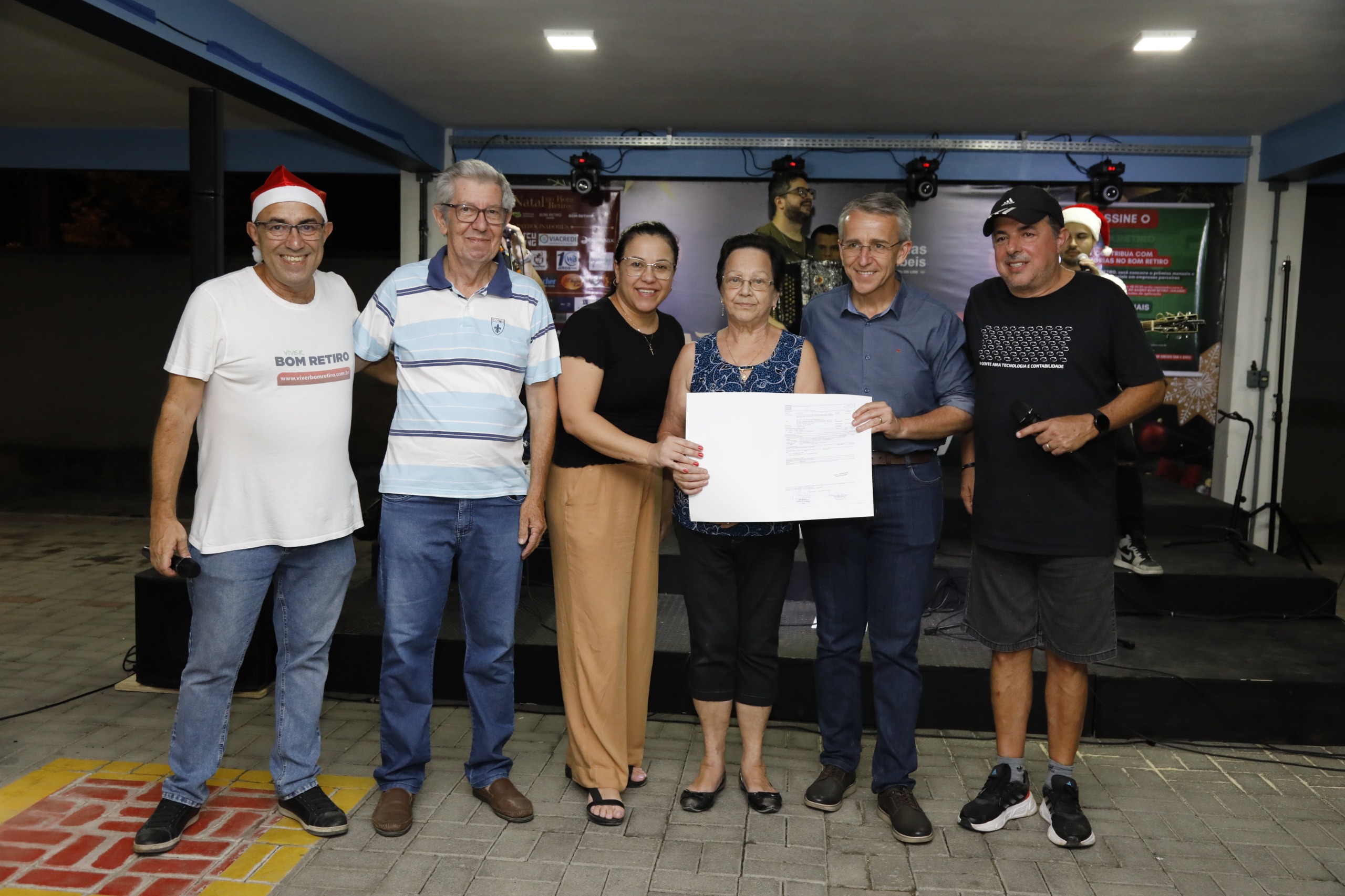Em dezembro, durante a festa de Natal no bairro, o prefeito Mario Hildebrandt veio ao bairro para prestigiar o evento e entregar a ordem de compra ao jornalista Giovani Vitória, presidente da Associação de Moradores e Amigos do Bairro Bom Retiro (AMABRE).