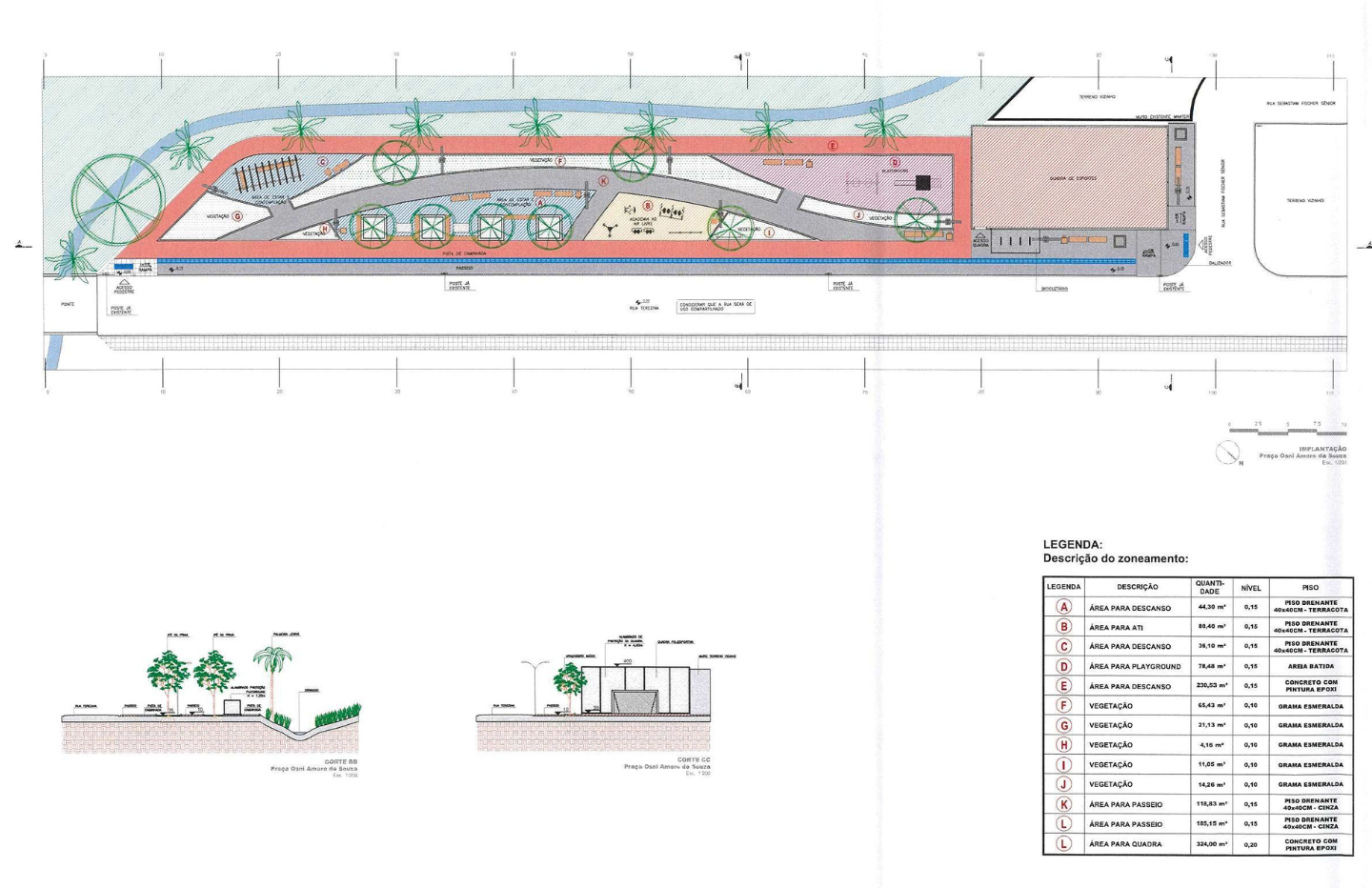 A Praça de Lazer Osni Amaro de Souza contará com 1.247,92 metros quadrados de área construída. Terá quadra polivalente, pista de caminhada, playground¸ academia ao ar livre, imobiliários urbanos, como bancos e mesas. Todo espaço será arborizado e receberá paisagismo. Um entroncamento protegerá o ribeirão.